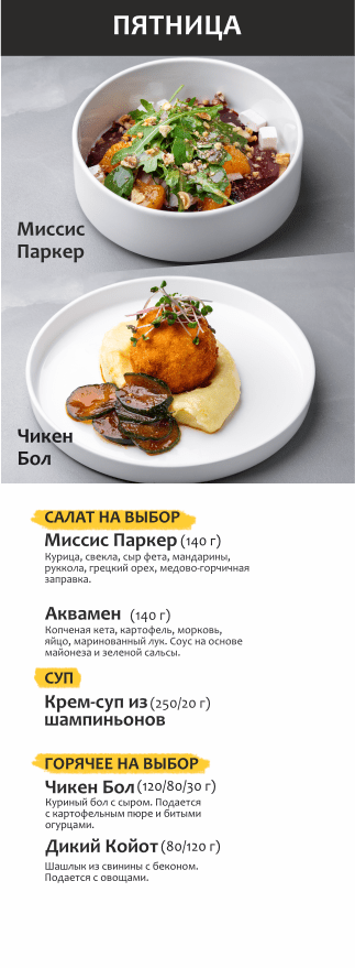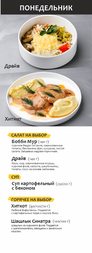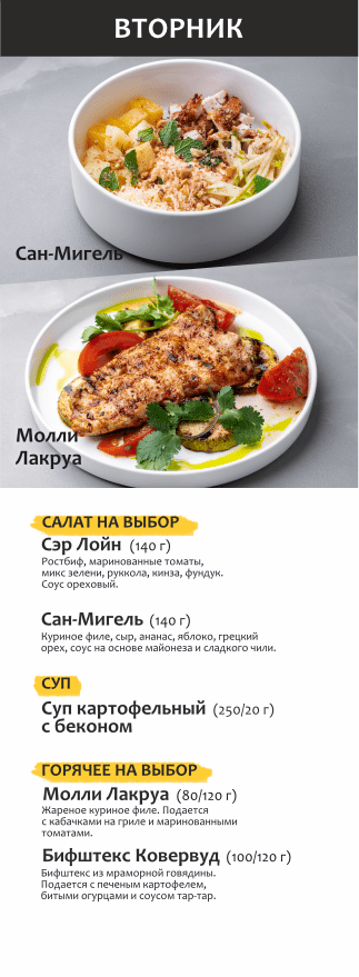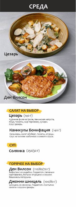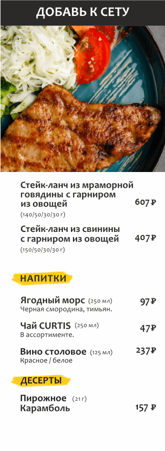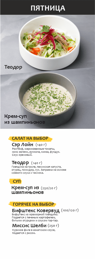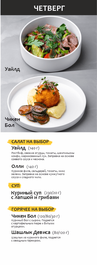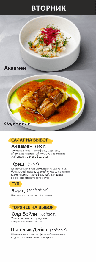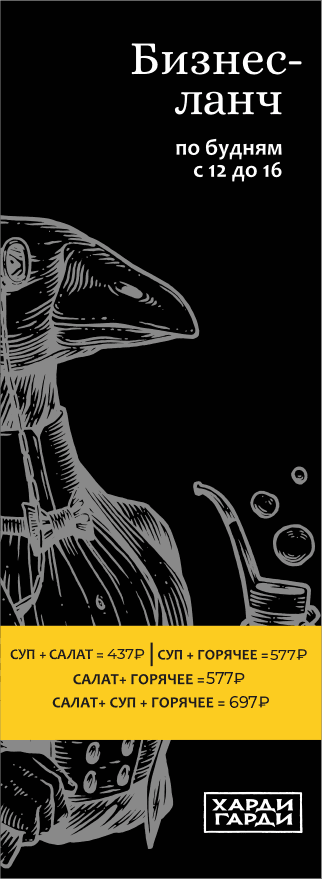Бизнес-ланч по будням с 12 до 16 часов